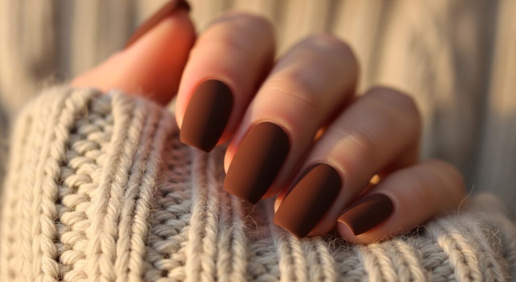 6. Chocolate Brown Matte Ballerina Nails