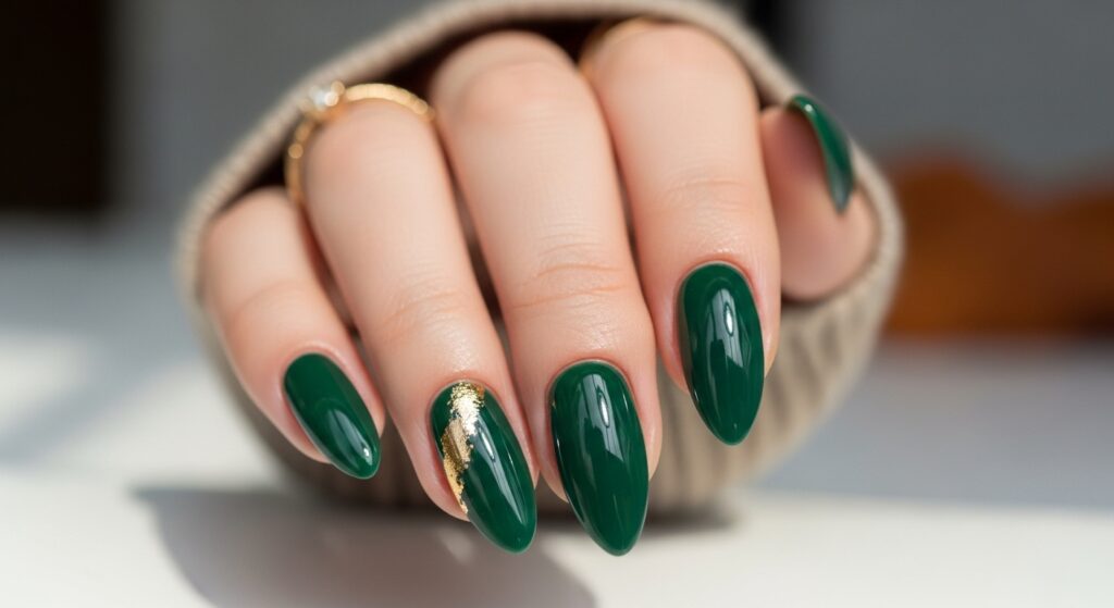 4. Forest Green Gloss Ballerina Nails