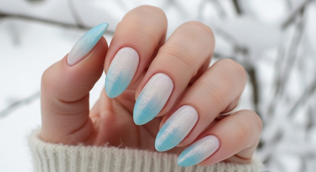 6. Frosty Ombre Almond Nails