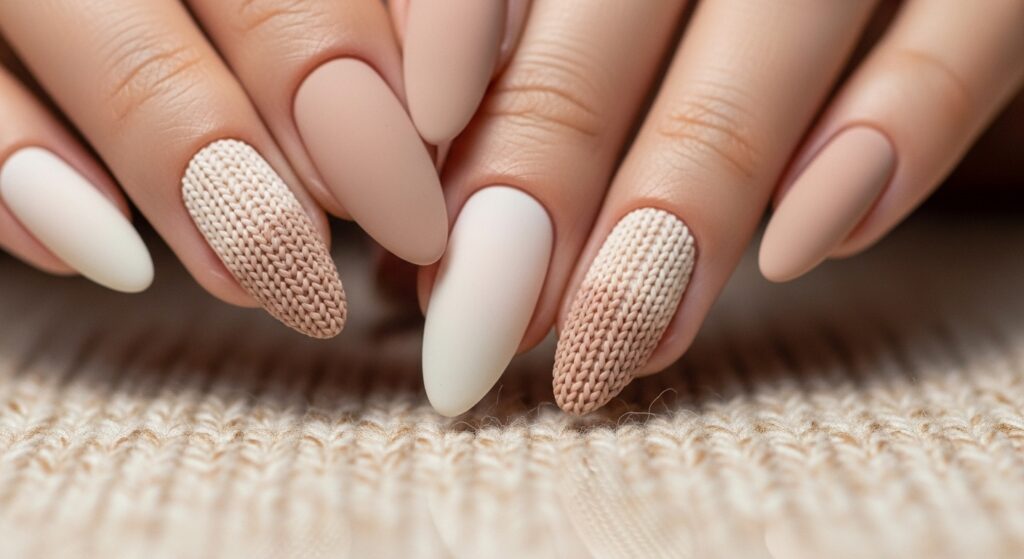3. Sweater-Texture Almond Nails