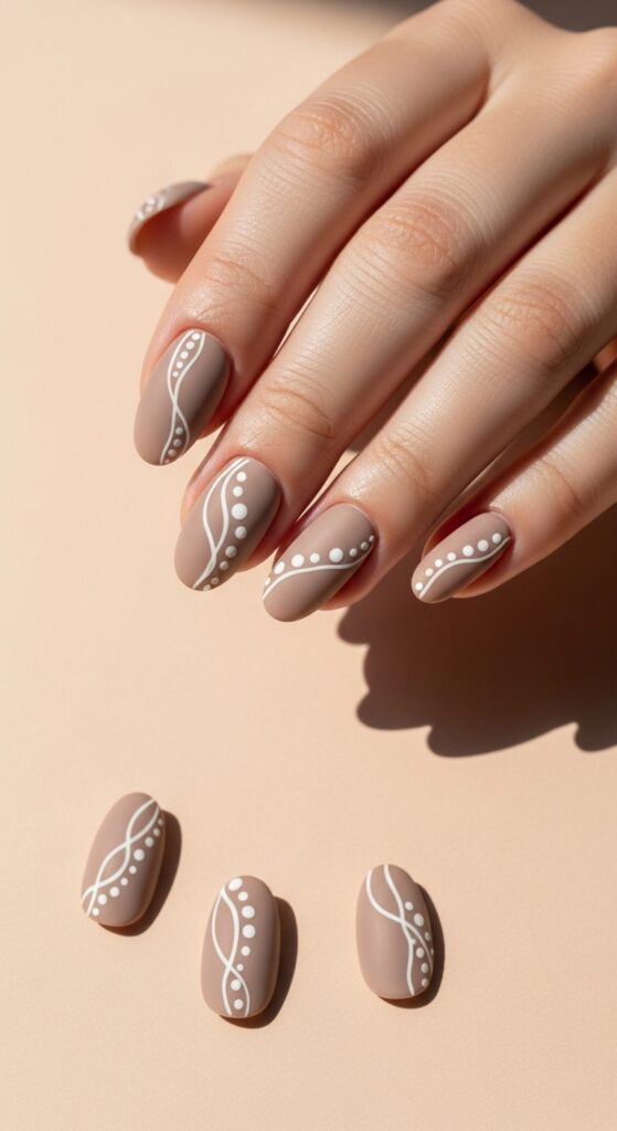Taupe is a refined and classy choice for fall 2025. On oval nails, this neutral shade creates a clean, polished look suitable for any occasion. Taupe pairs effortlessly with gold rings and autumn accessories, making it an excellent everyday manicure that still feels stylish.