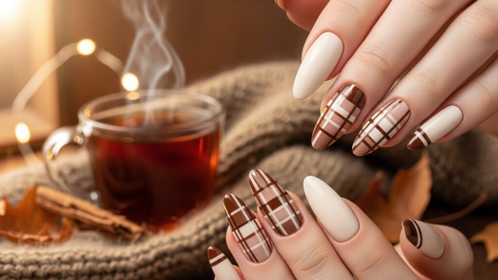 8. Brown Plaid Autumn Nails