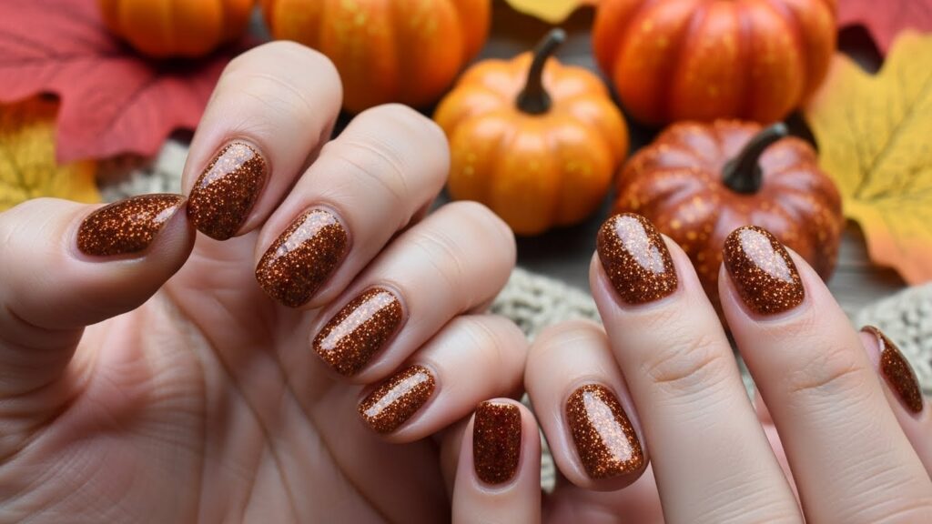 10. Pumpkin Brown Glitter Nails