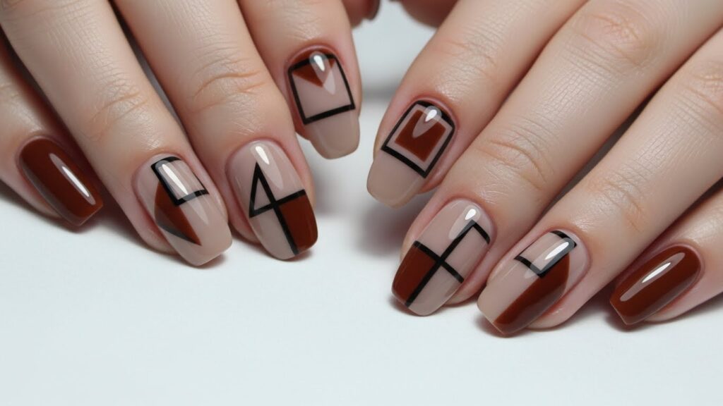 12. Taupe & Brown Geometric Nails