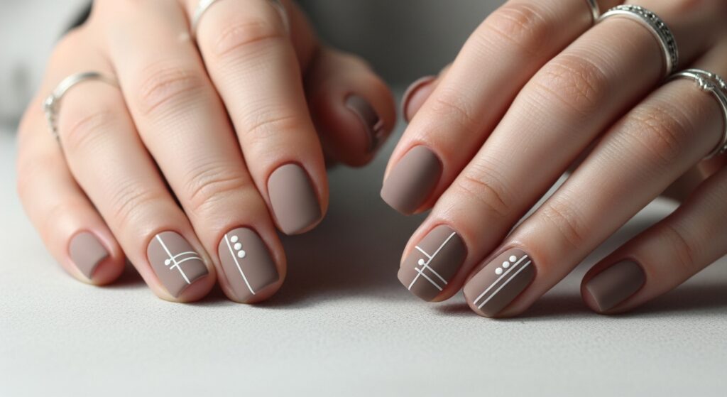 Taupe nails give a chic, understated touch to fall 2025 looks. The soft gray-brown tone works beautifully for minimalists and matches all outfits. A matte finish adds sophistication, while thin white lines or tiny dots can enhance the design without overwhelming it.