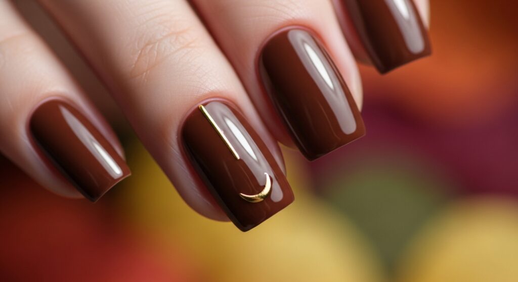 Chocolate brown nails bring rich, warm energy to your fall manicure. This glossy shade works well for both simple and glam looks. It pairs beautifully with gold jewelry and neutral outfits. Add a chrome accent nail if you want a trendy twist for 2025.