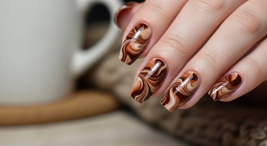 10. Mocha Swirl Nails