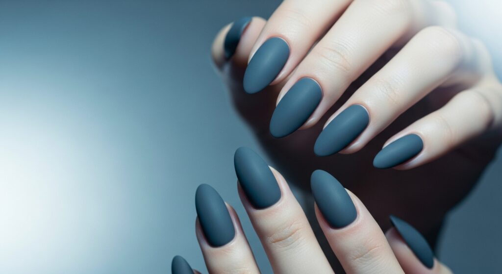 Midnight blue gel nails resemble a winter night sky, giving a bold and classy look. This deep navy tone pairs beautifully with silver accents or micro-glitter for a starry effect. The gel finish adds intense shine and long wear. It’s one of the most requested winter colors for 2025–2026.
