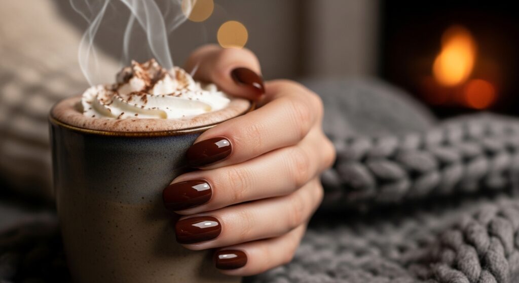 4. Hot Chocolate Brown Round Nails