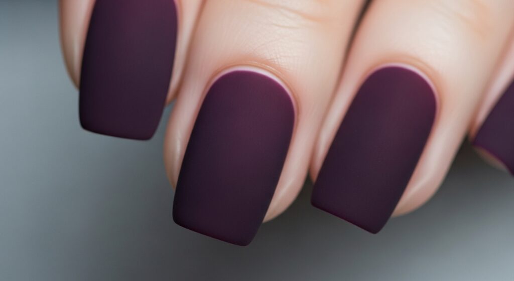 Matte plum nails offer a deep, moody color that’s perfect for 2025. This velvety purple shade feels luxurious and suits evening wear beautifully. Simple yet eye-catching.