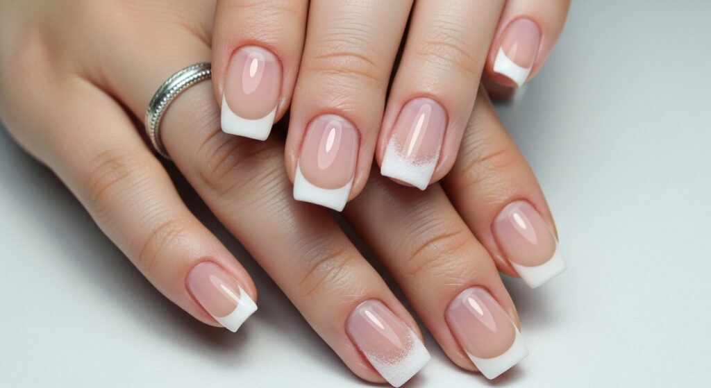A frosted French manicure gives winter nails a delicate and modern twist. The sheer nude base paired with soft frosted white tips creates a clean, minimal style. This design is perfect for those who like a touch of elegance without heavy details. It’s versatile enough for winter events, workdays, and casual outfits.