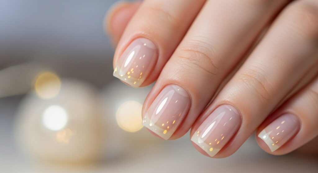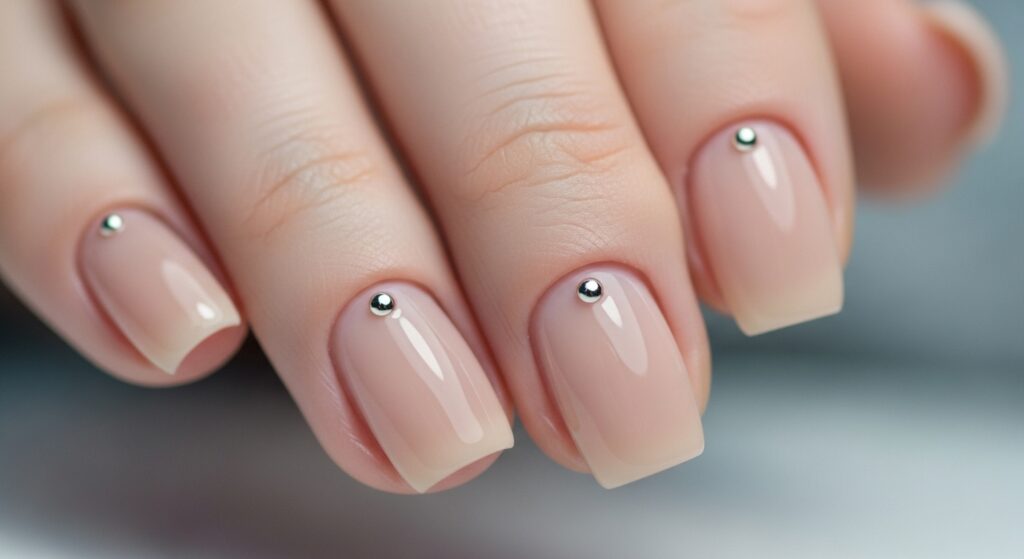 For a subtle hint of winter sparkle, silver dot minimal nails are perfect. A nude or sheer base with tiny silver dots adds a frosty touch without overpowering the simplicity. This design is understated, chic, and ideal for winter gatherings. It offers a festive feel while staying clean and minimal.