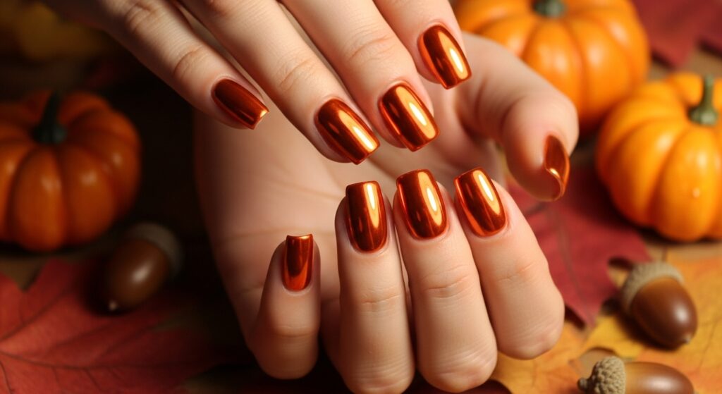 Burnt Orange Metallic Nails