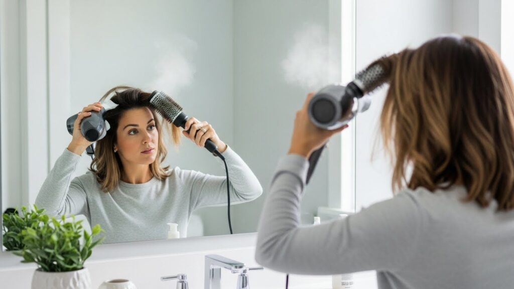 A salon-quality finish at home is possible with the right tools and techniques. Using a quality blow dryer, round brush, and heat protectant can enhance shine and volume. Proper sectioning and finishing products help recreate a smooth, professional look.